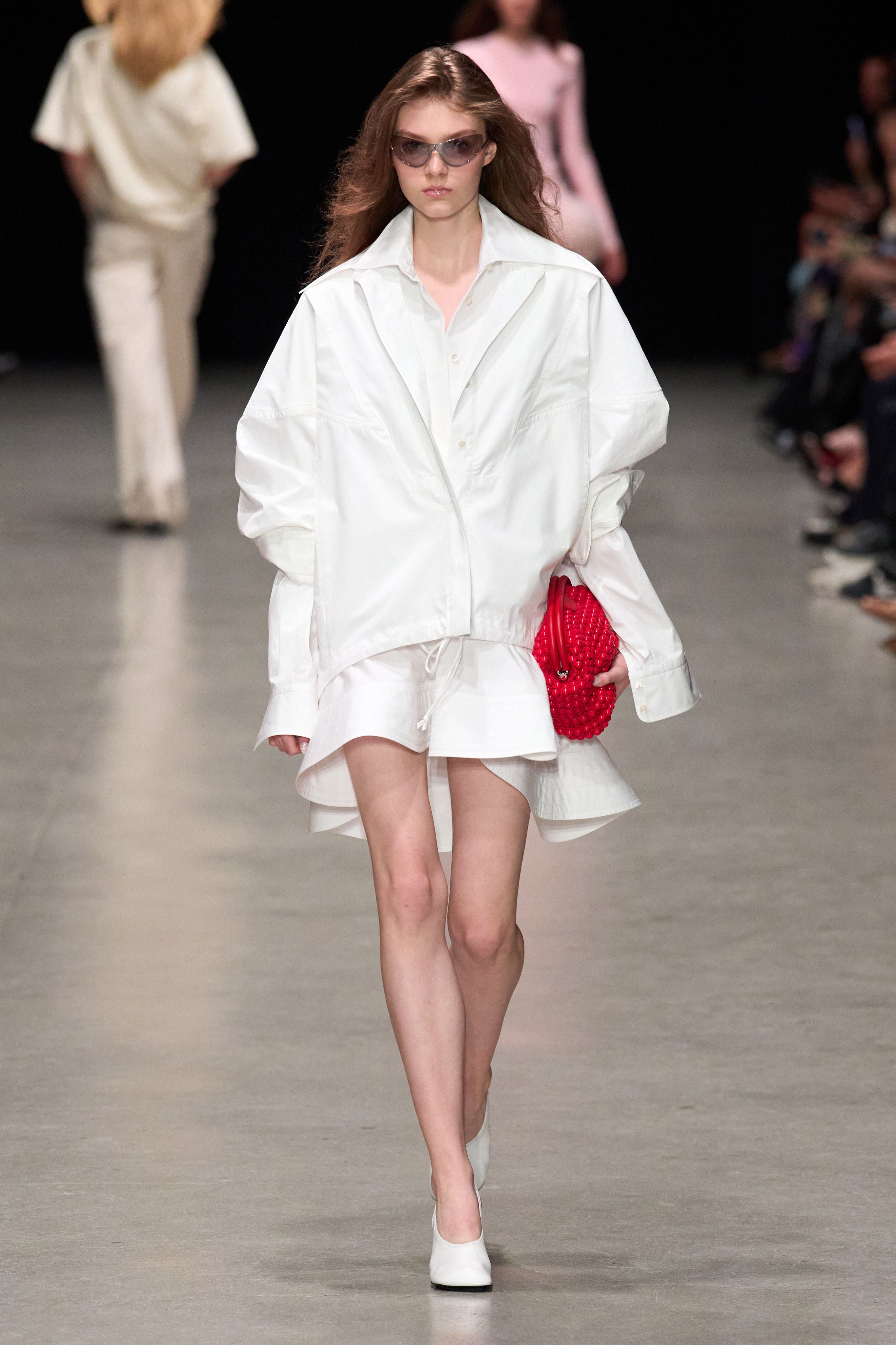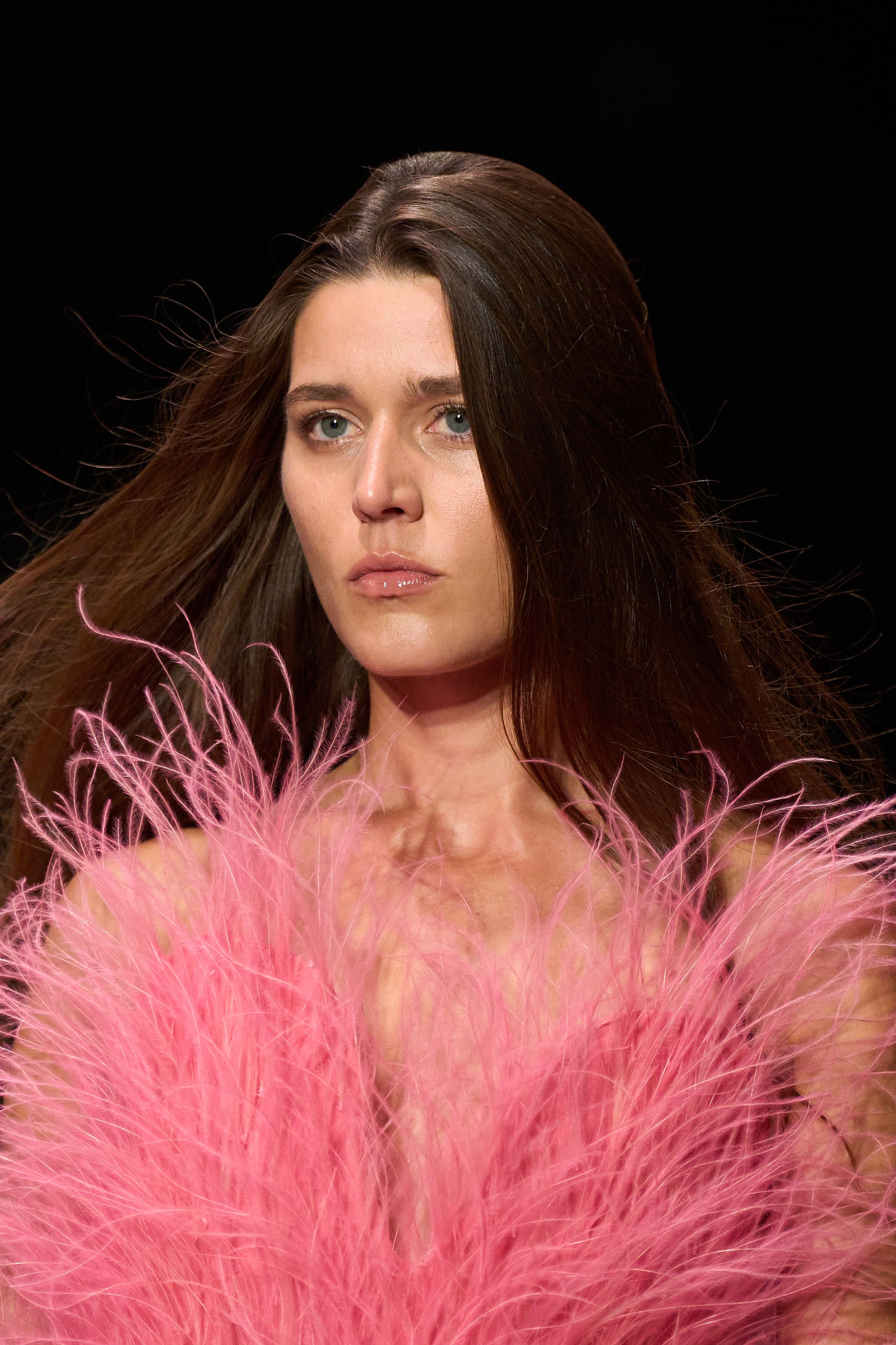 For SS26, red remains a powerful color on the runways, with designers like Carolina Herrera and Richard Quinn using it both as bold statement pieces and as striking accents throughout their collections. At major shows, like Chanel, pops of bright red and fire-engine hues. Also noted were burgundy and darker red tones in dresses, leather, and matching ensembles, offering an elevated contrast to the brighter shades. In beauty as well, red continues to reign, with classic red lips showcased on the catwalks as a key makeup moment that complements the fashion-forward, vibrant color.