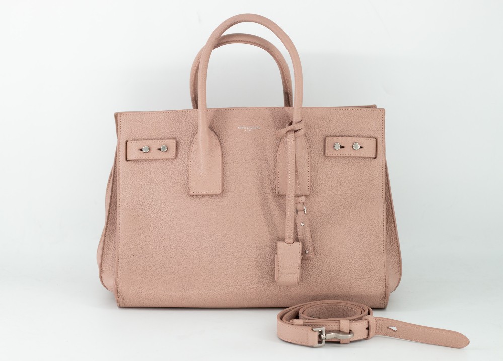 Sac de Jour in a shade of rose with crossbody strap