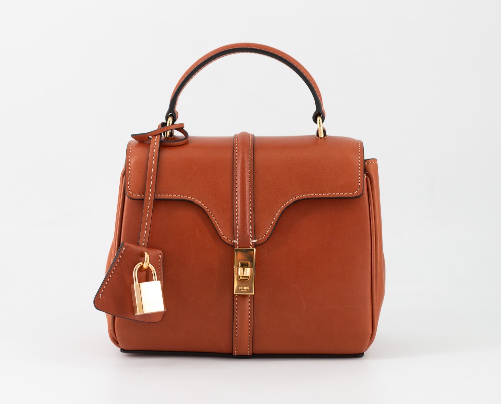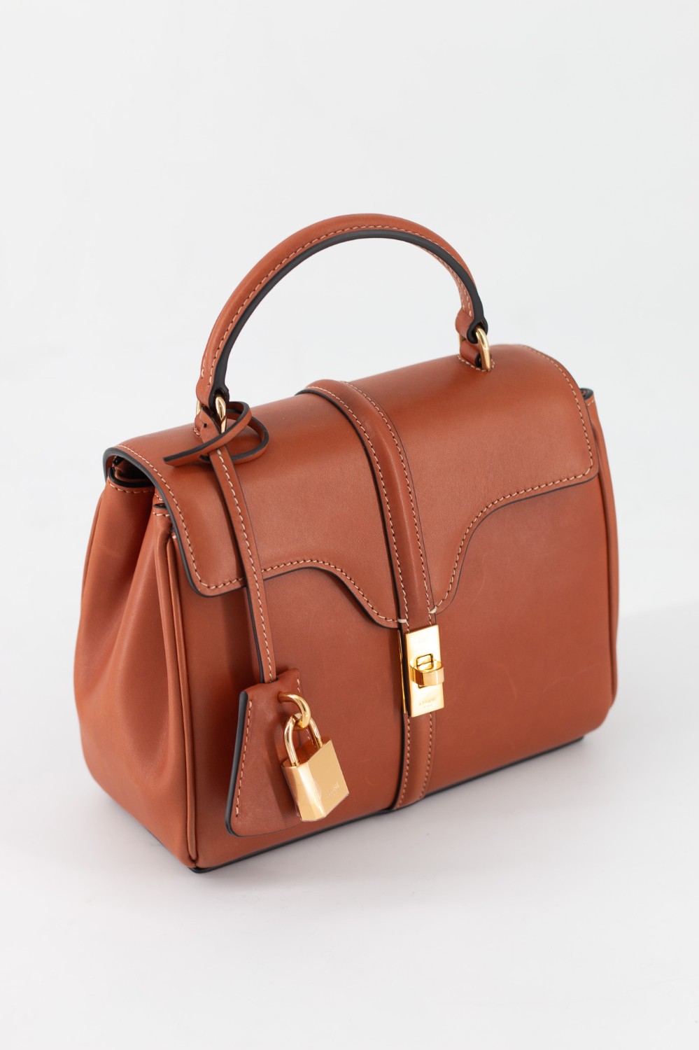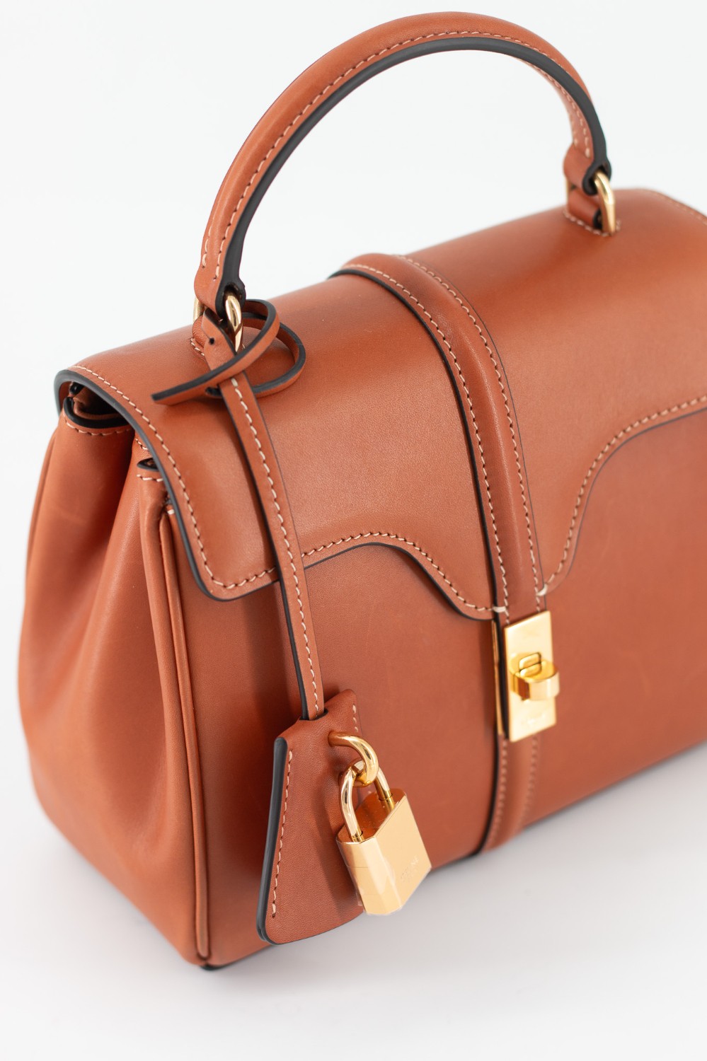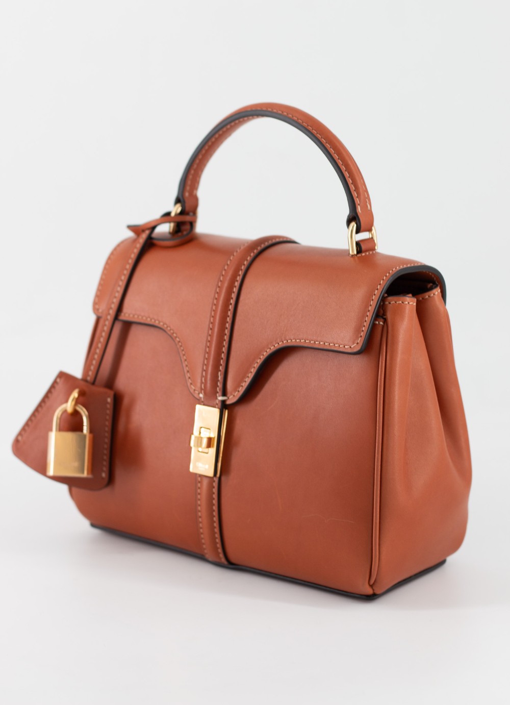 Celine Small 16, Natural Calfskin with crossbody strap.