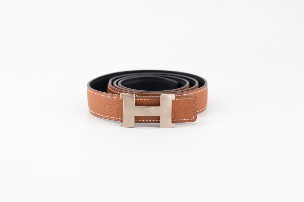 Hermes Mini Constance Reversible, cognac and black leather. 85cm. Condition: Very good